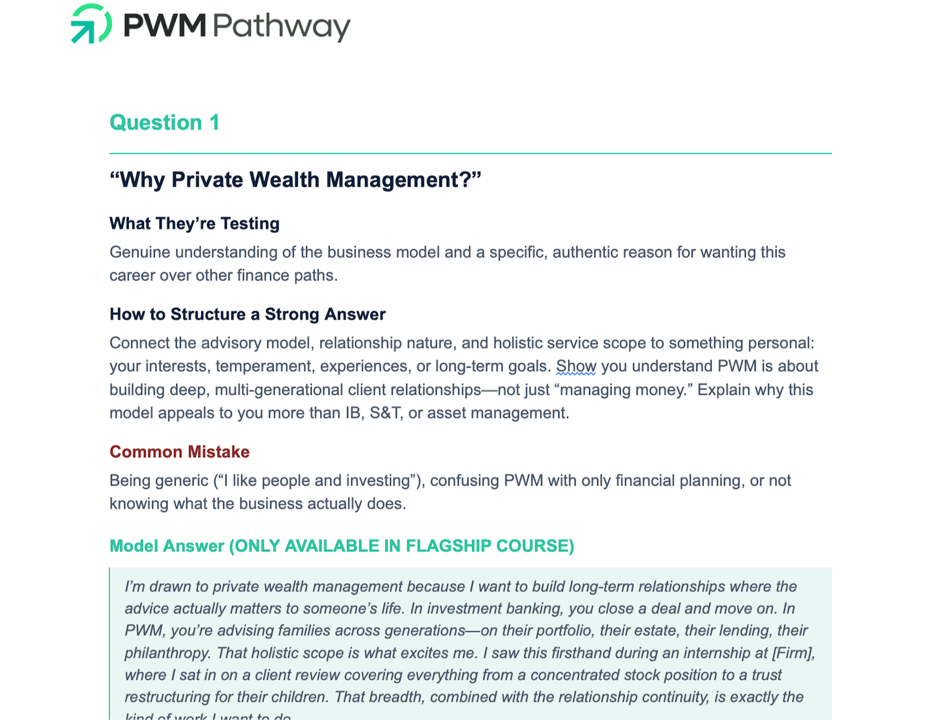 Enroll in the free course and download the guides to start preparing yourself to be a top PWM analyst candidate.Â