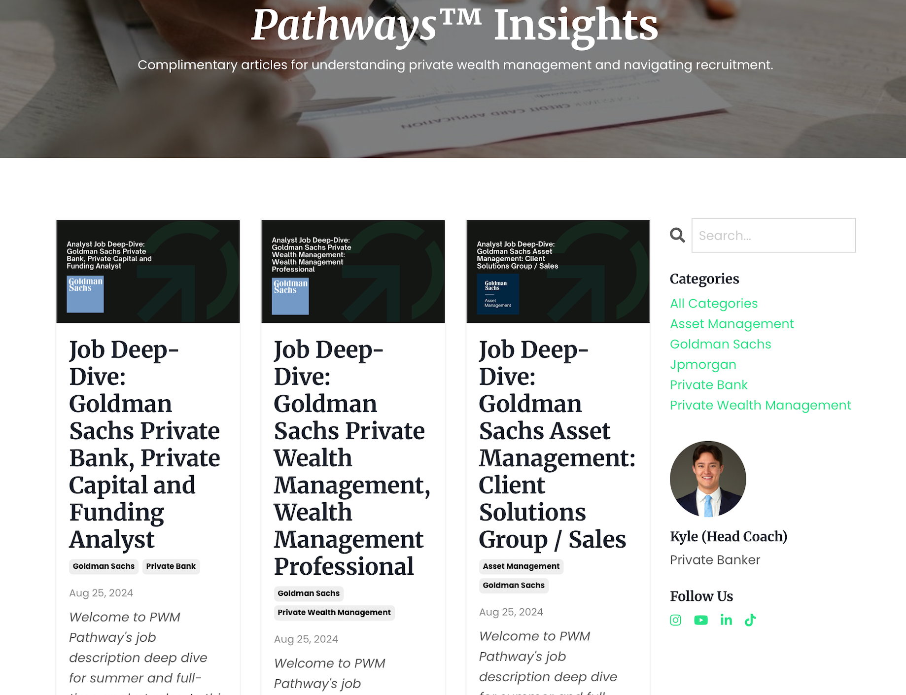 Readable content online about job descriptions, internship overviews, etc.